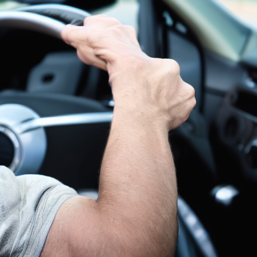 prompthunt muscular arm gripping a steering wheel at the top, first